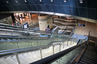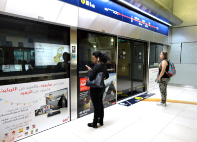 Stacje tej linii są, z niewielkimi wyjątkami, identyczne, także z zewnątrz. Zielonej inne. Ale wszystkie ze znakomitym systemem komunikacji wewnętrznej: ruchomymi i normalnymi schodami oraz windami. Zaś w przejściach nadziemnych ruchomymi chodnikami. Świetna jest informacja w językach arabskim i angielskim – także na peronach i w pociągach.