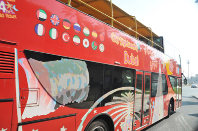 Dubaj poznawać można w różny sposób. Dobrym wstępnym, ale raczej dla zamożnych turystów, może być skorzystanie z jednej z kilku objazdowych linii turystycznych City Sightssing. Jeżdżą na nich piętrowe autobusy, przy czym na górnym poziomie przynajmniej połowa jest bez okien, lub nawet dachów.