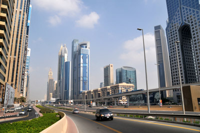 Te centra wysokich, przeważnie ciekawych architektonicznie gmachów, to przede wszystkim okolice od stacji Word Trade Center do Mall of Emirates. Między nimi stoi m.in. najwyższa budowla świata Burj Khalifa, a obok niej największe centrum handlowe, też świata, Dubaj Mall.