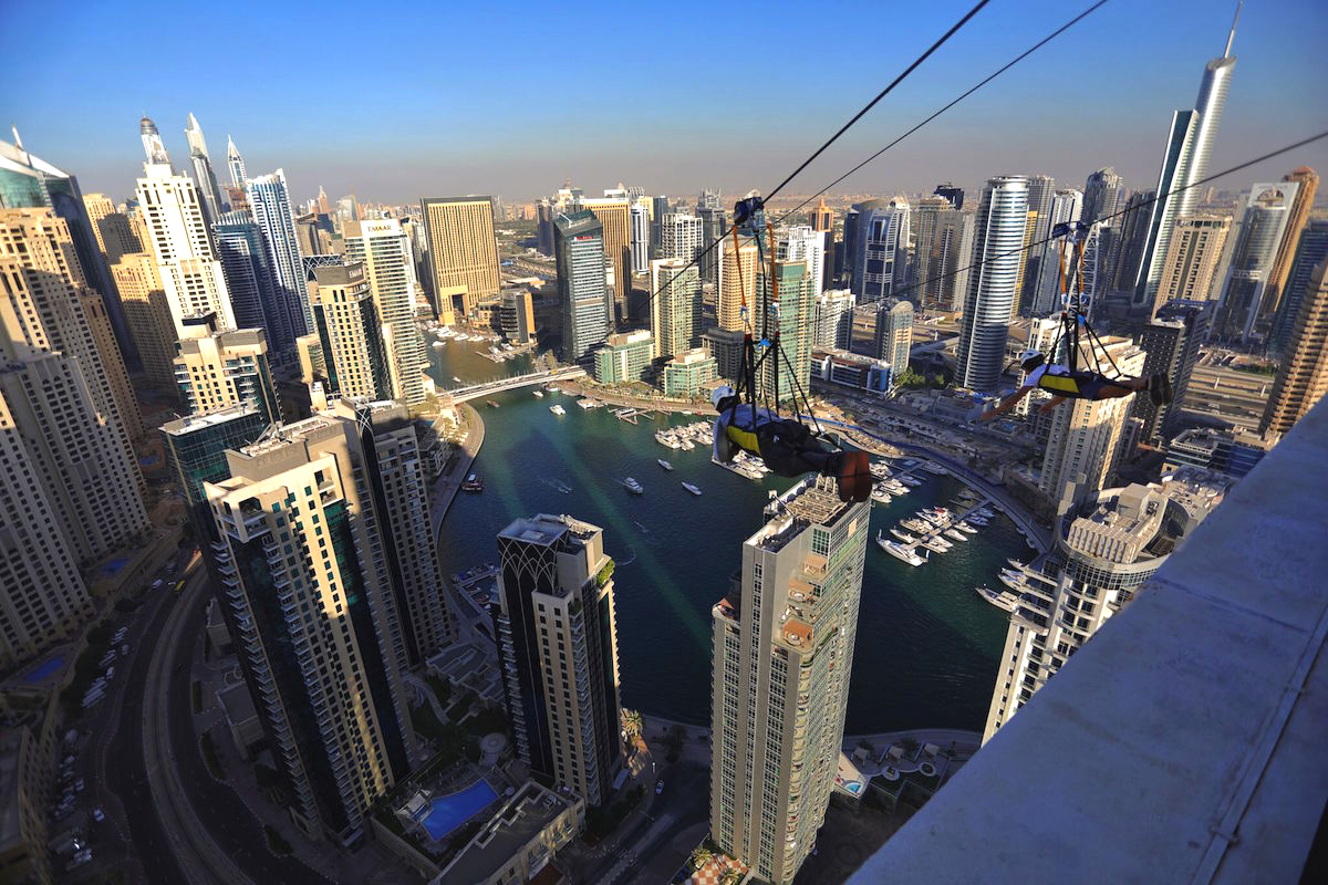 W Dubaju uruchomiono najdłuższą tyrolkę na świecie. Jej długość to 1 km, prędkość 80 km / h, wysokość 170 metrów – wszystko to razy dwa. Nowa Marina XLine Promenade w Dubai Marina zapewnia podwójną dawkę adrenaliny!