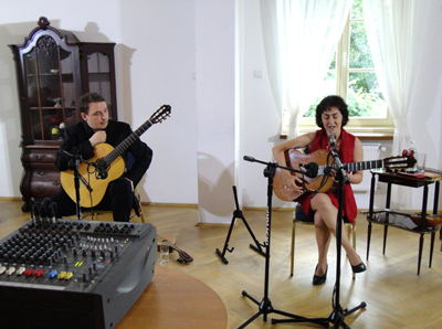 W dworze mieliśmy okazje obejrzeć sale na parterze z, m.in., wystawą poświęconych mu obrazów Ryszarda Gbiorczyka. Zaś po koncercie na dworskiej łące zorganizowane zostało ognisko „Globtrotera” z pieczeniem kiełbasek i, oczywiście, czymś do popicia. Było to ostatnie spotkanie dziennikarzy – członków Stowarzyszenia i jego przyjaciół przed dwumiesięczną przerwą wakacyjną.