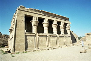 Wspaniale zachowały się niektóre, ustawione w różnych miejscach świątynnego kompleksu, płaskorzeźby w kamieniu oraz kapitele z twarzami bogini Hathor – pozostałości kolumn, lub przygotowane do ustawienia na nich. Gdyż, jak już wspomniałem, świątynia ta nie została nigdy całkowicie ukończona.
