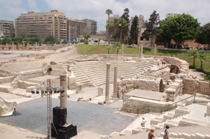 Z Kairu był jeszcze tylko jednodniowy wypad do Aleksandrii aby zobaczyć w niej Cytadelę, teatr grecko – rzymski i przyległe łaźnie, katakumby oraz ogrody i plażę przy willi króla Faruka. Bo ta rozległa willa, w której niegdyś było muzeum oraz kawiarnia z doskonałymi lodami, które bardzo mi smakowały, zamieniona została na jedną z siedzib prezydenta Muhammada Husni Mubaraka.
