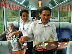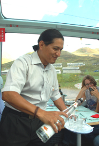 Składający się z 6 hoteli 4 i 5* z, łącznie, około 500 pokojami. A także 25 willami oraz infrastrukturą sportową i wypoczynkową. Już wcześniej w naszym wagonie, w którym jedzie także spora grupa turystów japońskich, pojawili się kelnerzy roznosząc wodę mineralną i wino oraz zbierając zamówienia na obiad. Wybór nie jest wielki.