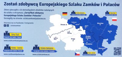 Dolny Śląsk wydał również bezpłatny folder poświęcony temu szlakowi na jego terenie, z mapką oraz lokalizacją 22, a nie jak w prezentacji tylko 17 zamków i pałaców z informacjami o nich, miejscami na pieczątki potwierdzające ich odwiedzenie oraz zachętą do ich zbierania, aby zostać „Zdobywcą Europejskiego Szlaku Zamków i Pałaców”. Z odsyłaczem po szczegóły na stronę: szlakzamkowipalacow.eu. Aby jednak nie ograniczać zainteresowań turystów tylko do niego, wydano również, dofinansowaną przez samorząd województwa bezpłatną mapkę: