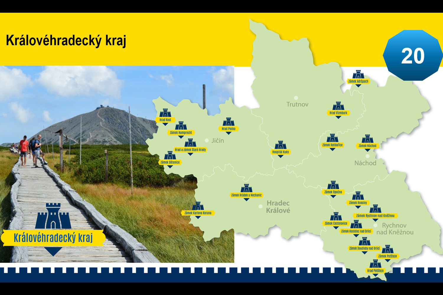 Obejmował on jednak nie tylko zamki i pałace, ale również zabytkowe miasta, a w nich m.in. klasztory, ratusze, zabytkowe kościoły itp. W roku 2019 uczestniczyłem w tamtych stronach w rozszerzonym indywidualnie studyjnym wyjeździe dziennikarskim na zaproszenie stowarzyszenia „Branka” z Nachodu i warszawskiego oddziału Czech Tourismu. Byliśmy najpierw z ówczesną jego dyrektorką Ivaną Bilkovą, a następnie resztą kilkuosobowej grupy dziennikarskiej w Vrchlabi, Jilemnicach, Hostinnem, Trutnove, Broumove, Nachodzie, Novym Meste nad Metuji i Josefove, a po stronie polskiej w Pałacu Żelazno koło Kłodzka.