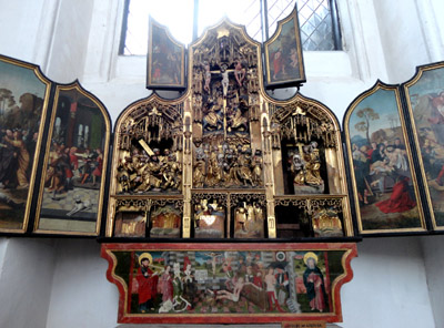 Nie zamierzam opisywać go szczegółowo, lepiej robią to przewodnicy, lub można przeczytać w publikacjach. Skrócony opis tego ołtarza zajmuje stronicę dosyć drobnego druku. Wspomnę tylko, że wiele figur w nim, to autentyki, reszta rekonstrukcje. Liczne też są ołtarzowe malowidła ze scenami z życia Marii oraz Jezusa.