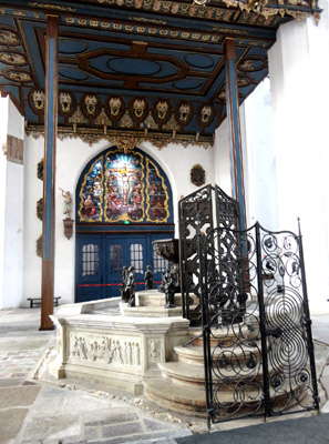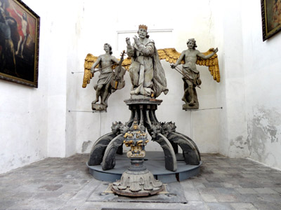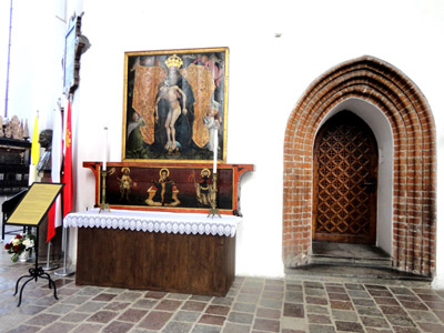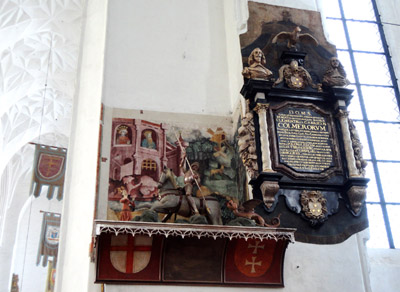 Późniejsze malowidło zdjęto (szczegóły jak, to osobny interesujący temat), umieszczono na nowym podłożu, a następnie umieszczono poniżej grupy rzeźbiarskiej ze św. Jerzym. Inny cenne zabytek świątyni, to gotyckie Sakramentarium z 1482 r. wyrzeźbione w drewnie w kształcie kilkupiętrowej wieżyczki z bogatą dekoracją o wysokości 83,5 metra.