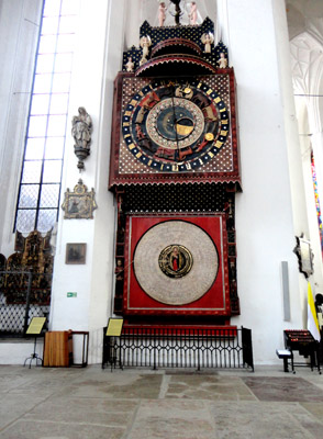 Wykonał go w latach 1464-1470 Hans Düringer z Torunia, pracując nad nim z synem. Zegar o wysokości ponad 14 m składał się z trzech kondygnacji: kalendarium, planetarium i teatru figur. Posiadał aż 6 niezależnych mechanizmów. Według legendy, gdy władze niemieckiego miasta Lubeka zaproponowały mistrzowi wykonanie podobnego zegara dla niej, zazdrośni gdańszczanie oślepili go.