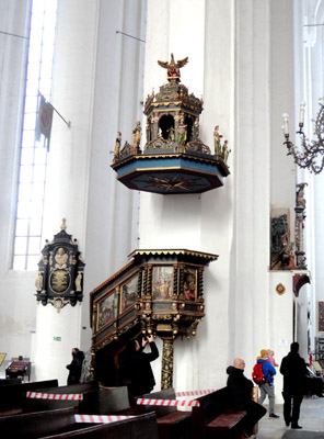 Aż do czasów Reformacji był to kościół katolicki z, głównie, gotyckimi ołtarzami pełnymi rzeźb i obrazów. W 1529 r. odbyło się w nim pierwsze nabożeństwo luterańskie. Z tym, że ołtarz główny aż do roku 1572 służył katolikom.