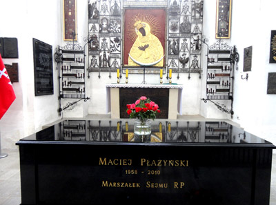 Głównie jego rozmiar i „rażące różnice formalne” w stosunku do otoczenia. To samo można powiedzieć o stojącym w tej kaplicy ogromnym czarnym sarkofagu Marszalka Sejmu Macieja Płażyńskiego, jednej z ofiar katastrofy smoleńskiej.