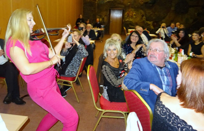 Można było także spokojnie posiedzieć i porozmawiać przy jednym z wielu stołów, korzystając z tego, co znajdowało się na ogólnym szwedzkim. Wieczór umilały jego uczestnikom: muzyką skrzypaczka Magdalena Szymańska grając nie tylko na zaimprowizowanej estradzie, ale także przechadzając się powabnie ze skrzypcami wśród stolików oraz śpiewem Jasmine Szancer z Nowego Jorku.