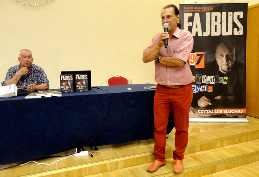 Same tematy wchodziły mi w ręce – podkreślał. Nie były zaplanowane, a często okazywały się zabawnymi historiami. I sypnął przykładem, jak przed snem wypił z Janem Karskim, kurierem polskiego podziemia podczas wojny, butelkę koniaku, bo jego sławny „współ spacz” nie znosił chrapania, które jest znanym problemem Fajbusa. A tak się złożyło, że w amerykańskim hotelu musieli dzielić nie tylko pokój, ale i „małżeńskie” łoże z jedną kołdrą. Inny w wątków książki, to 11 zawodów, jakie w życiu wykonywał Michał