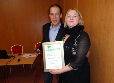 Po zakończeniu prezentacji prezes SD-P „Globtroter” Sławomir Bawarski wręczył nagrodę i dyplom „Za najciekawsze publikacje turystyczne w roku 2015” red. Magdalenie Pinkwart, która nie mogła wziąć udziału w tradycyjnej Wigilii Globtrotera, podczas której nagrody te otrzymali pozostali ubiegłoroczni laureaci. Oczywiście, jak zwykle po części oficjalnej spotkania, był czas na rozmowy kuluarowe przy winie i piwie