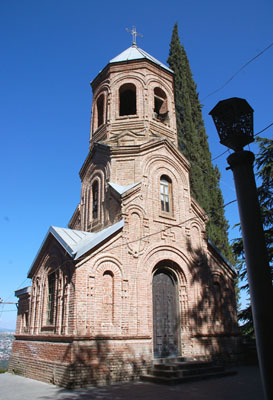 Ale poza tym, co wymieniłem na szczycie, na zboczu Mtacmindy nieco poniżej stacji pośredniej kolejki górskiej, na której mijają się jej wagony jadące w górę i w dół, znajduje się jedno z ważnych miejsc stolicy, od którego nosi ona swoją drugą nazwę Świętej. Przed wiekami, nie wiadomo, czy w wyniku ruchów górotwórczych, czy jakiegoś żywiołu, jeden z mniejszych szczytów tego masywu obsunął się, tworząc niewielkie platformy.