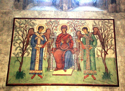 Jej uczestnicy wychodzili, więc mniszka zaprosiła mnie do wnętrza. Na wiadomość, że otrzymałem od ihumeni zgodę na fotografowanie wnętrz, co potwierdziłem zdjęciami zrobionymi wewnątrz katedry, mogłem fotografować i tutaj. Kapłan odprawiający mszę już się rozbierał z ornatu, ale też pozwolił sobie zrobić zdjęcie nawet w niekompletnym stroju.