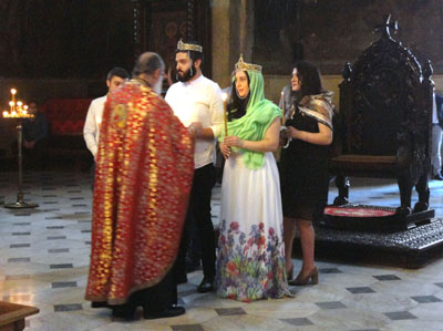 Skromny, gdyż z udziałem, poza świadkami, zaledwie kilku gości, ale dwu kapłanów. Z tradycyjnym koronami na głowach nowożeńców, później trzymanych nad nimi przez świadków, gdy podążali za udzielającym im błogosławieństwa. Była sobota, ulubiony tu dzień ślubów. Gdy wychodziłem ze świątyni, kolejna para w strojach ślubnych zdążała już do wejścia i ołtarza.