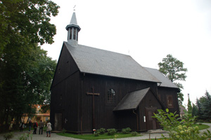 Ta drewniana, jedna z kilku podobnych pod względem budulca w powiecie oraz kilkudziesięciu w województwie kujawsko – pomorskim świątynia, bez wieży, a jedynie z maleńką wieżyczką na dachu nad głównym wejściem, nie przypomina pięknych kościołów drewnianych Małopolski czy Podkarpacia.