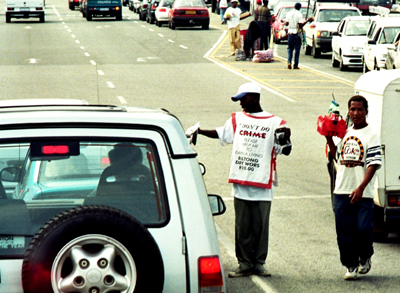 * Zagrożenie bezpieczeństwa pamiętam z Johannesburga z wyjazdu na południe Afryki w 1999 roku. Gdy przejeżdżaliśmy przez jedną z „szemranych” dzielnic, zaszokował nas widok szpitala pokrytego drutem kolczastym aż do I piętra. Przewodnik powiedział, że jeżeli chcemy fotografować przez uchylone okna – o tym, aby na chwilę wysiąść nie było ze względów bezpieczeństwa mowy, to w żadnym przypadku nie wolno nam mieć paska aparatu założonego na szyi. Bo – tłumaczył – jak rabuś podskoczy i wyrwie go wam, to prędzej was udusi, niż zrezygnuje ze zdobyczy. Uliczni sprzedawcy pamiątek na jezdniach między jadącymi samochodami mieli kamizelki z napisem: „Nie jestem kryminalistą”.