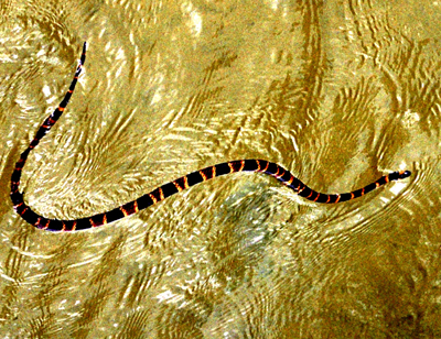 * W Meksyku, podczas zwiedzania łodzią kanionu El Sumidero, zauważyłem w wodzie pięknego węża koralowego. Zdążyłem go sfotografować, gdy złapał mnie za rękę sternik odciągając z ostrzeżeniem: jak ukąsi, to trzeba w ciągu 8 minut wstrzyknąć odtrutkę, później człowiek umiera. A my nie mamy zastrzyków…