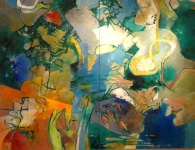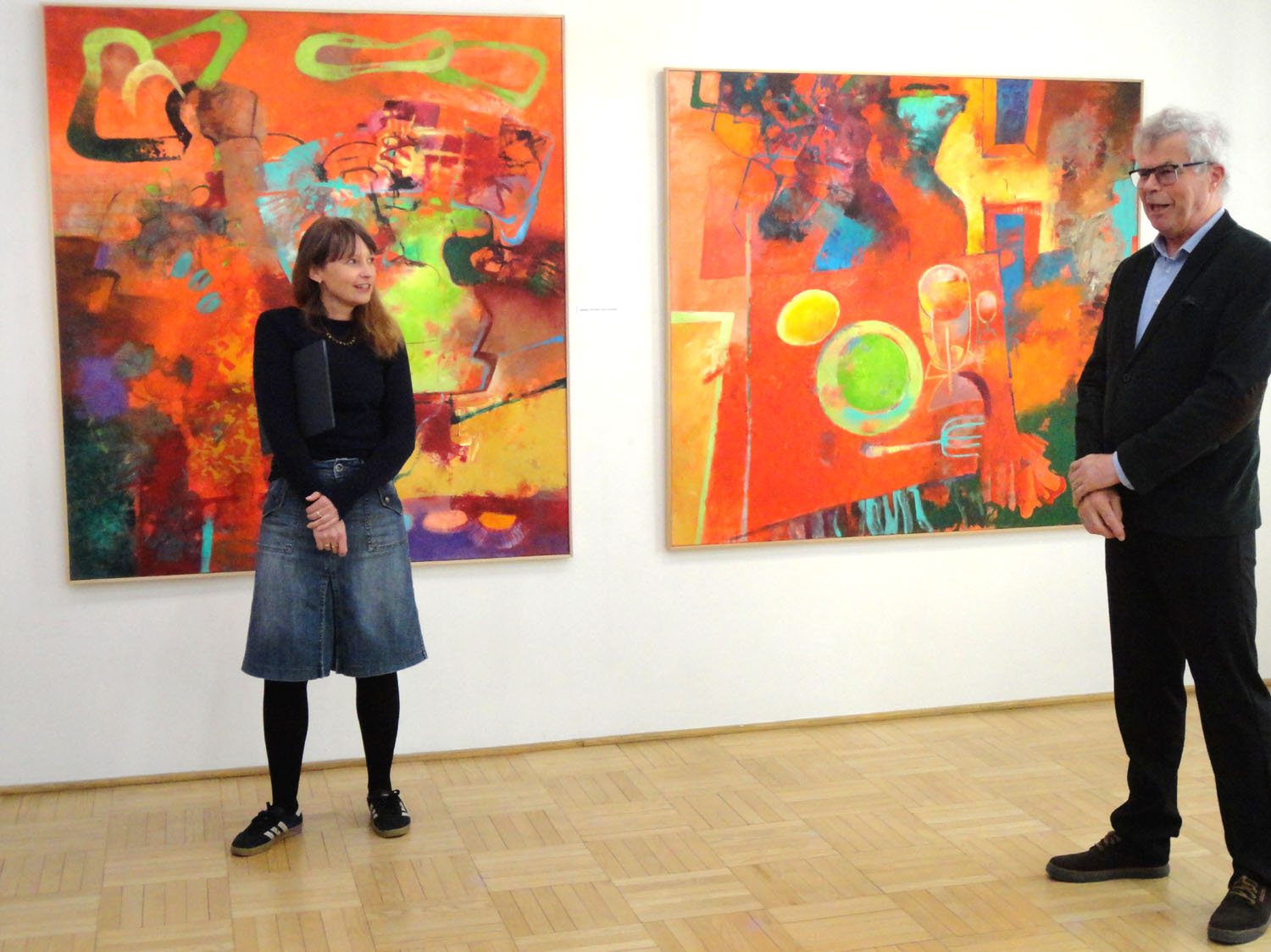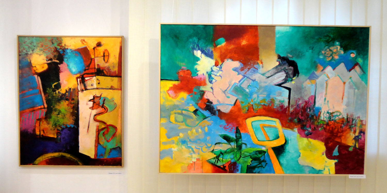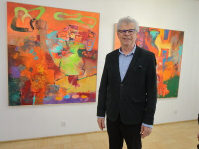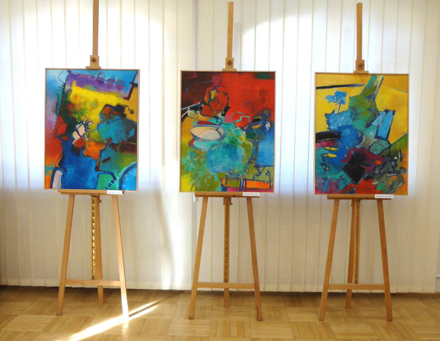 Można na niej obejrzeć 18 jego prac z ostatnich lat, z jednym wyjątkiem głównie dużych i bardzo dużych formatów, a kolejne 4, nie powtarzające się w ładnie wydanych wystawowych folderach. Reprodukuję je z autografami i dedykacją, które otrzymałem od artysty. Są to bardzo dekoracyjne, wielobarwne, głównie tempery malowane na płótnie, obrazy abstrakcyjne. Artysta, rocznik 1953, oprócz malarstwa będącego główną dziedziną jego twórczości zajmuje się również rysunkiem, ilustracjami książkowymi, produkcjami filmowymi i kreacją  monumentalną.
