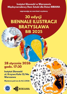 Międzynarodowe Biennale Ilustracji w Bratysławie – BIB – odbywa się co dwa lata od roku 1967. W październiku 2025 roku była to już 30-ta, jego jubileuszowa edycja. W jej artystyczny plon pokazano w Instytucie Słowackim w Warszawie 28 stycznia 2026 r. podczas jej pokonkursowego wernisażu. Otworzył go dyrektor IS Milan Novotný.