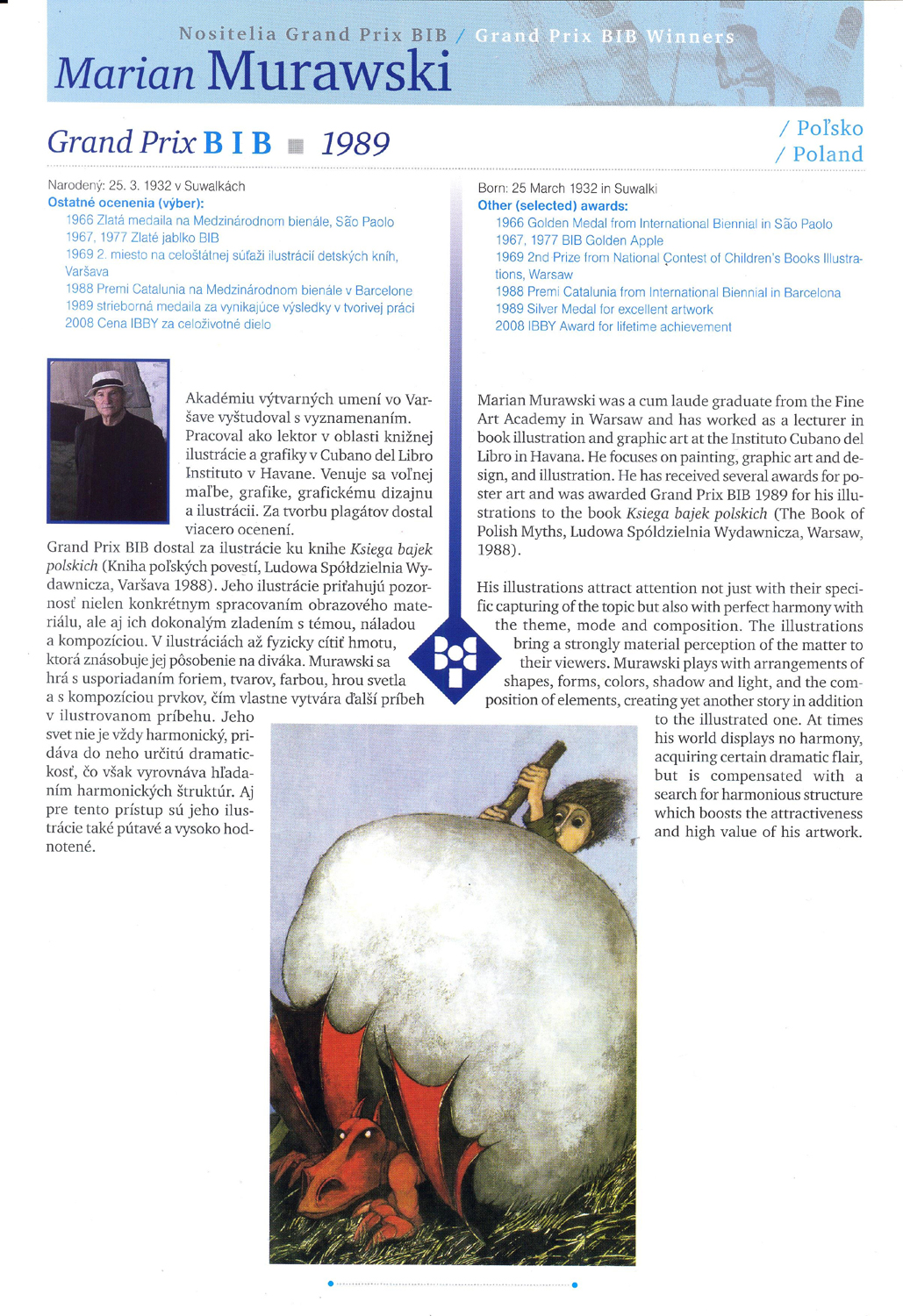 W przeszłości Grad Prix BIB otrzymali również artyści polscy. W 1971 r. Andrzej Strumiłło, w 1989 Marian Murawski i w 1991r. Stasys Eidrigevicius.