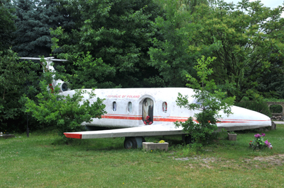 Dalej, po lewej stronie na łące wśród drzew, widać betonowy samolot o rozmiarach 10 na 11 metrów, symbolizujący prezydencki Tu-154M. Ale w wersji „jak wyobraża go sobie mały Jaś, który samolotu nie widział nigdy z bliska”. W jego otwartych drzwiach stoi para prezydencka: Maria i Lech Kaczyńscy.