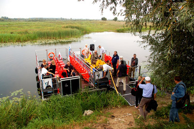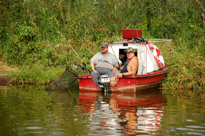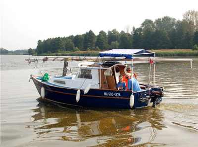 Dzikie kaczki nie zwracają uwagi na wielkiego, trochę hałasującego silnikiem, intruza. Łabędzie na wszelki wypadek dostojnie odpływają w gęstwinę trzcin. Stadko kormoranów, które obsiadło jakieś sterczące z wody resztki drzewa, zrywa się do lotu w ostatniej chwili. Mijamy dosyć rzadkie, stojące na wysokim brzegu, domki wakacyjne, samochodowe przyczepy, a przy brzegach różnego rodzaju, głównie motorowe, łodzie i inne „jednostki pływające”.