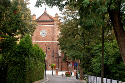 Przez korony wysokich drzew przebija się widok szczytu głównego miejscowego zabytku – kościoła p. w. Zwiastowania NMP. Na brzegu Narwi widać trochę niewielkich budynków, później przystań z imponująco dużym stateczkiem wycieczkowym, który przypłynął tu z warszawskiego Żerania i wkrótce będzie wracał w rejs powrotny do stolicy.