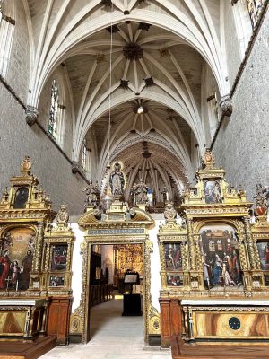 Niezwykły jest także grobowiec, na płytach którego spoczywają kamienni władcy w otoczeniu wizerunków świętych i apostołów. Ma kształt ośmioramiennej gwiazdy: nałożenia na siebie kwadratu i rombu, a jego boki pokryte są rzeźbami i niezliczonymi detalami. W innej części kościoła jest, wykonany przez tego samego artystę i w podobnym stylu, grobowiec Infanta Alfonsa Kastylijskiego. Dodam, że do ważnych detali kościoła, oprócz kaplic, należy również tzw. tryptyk kalwaryjski szkoły flamandzkiej, autorstwa najprawdopodobniej Rogiera van der Weydena (ok. 1399/1400 – 1464).