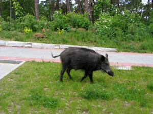 Ludzi się nie boją, bo są przez nich dokarmiane. Nawet locha z małymi nie jest groźna bo wie, że od ludzi nic złego jej nie spotka. Co roku, według różnych rankingów, plaże Krynicy Morskiej zaliczane są do najczystszych i najbezpieczniejszych w Polsce. Na krynickiej plaży, po burzy można znaleźć kawałki bursztynu, a każdego roku, w lipcu odbywają się w Krynicy Morskiej eliminacje do Mistrzostw Świata w Poławianiu Bursztynu.Finał organizowany jest odległym od miasta 29 km na zachód Jantarze, gdzie mieści się Muzeum Bursztynu. Połowy kończy jantarowe grill-party organizowane przez ośrodki Medyk i Neptun. Dodatkową atrakcją Jantaru jest nowy szpital wielospecjalistyczny „Jantar” otwarty w maju br. Jest on pierwszą placówką szpitalną na terenie Mierzei Wiślanej, która oferuje usługi w zakresie okulistyki, ortopedii, traumatologii, neurochirurgii, urologii oraz chirurgii naczyniowej i plastycznej.