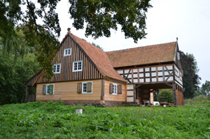 Obok gotyckich kościołów najbardziej charakterystyczne zabytki Żuław. Budowali je bogaci chłopi. Przeciętny dom miał wymiary przekraczające 10×20 metrów. Cechowała je konstrukcja szkieletowa z drewna wypełnionego cegłą holenderską. Liczba słupów w podcieniu bywała różna, sam podcień był najczęściej spichlerzem. Na przełomie XVIII/XIX wieku były tak popularne, że przerabiano istniejące domy na podcieniowe. Można je podziwiać w Orłowie i Marynowach.Ostatnie wiatraki na Żuławach.