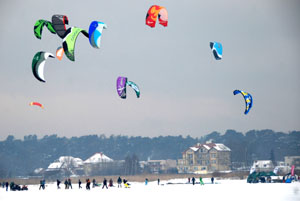 Chociaż w Krynicy królują sporty wodne, to zima w tym letnim kurorcie też pozytywnie zaskakuje, a to za sprawą imprezy „Weekend na lodzie”, która odbywa się cyklicznie na przełomie stycznia i lutego.– Wypróbuj swych sił w snowkitingu – namawia Dariusz Labuda –organizator imprezy z hotelu Krynica i firmy Kitetim. Snowkiting to zimowa odmiana kitesurfingu, młody, szybko rozwijający się sport łączący latawiec pociągowy ze snowboardem lub nartami. Do uprawiania snowkitingu potrzebny jest wiatr oraz duża otwarta przestrzeń pokryta śniegiem lub lodem. Teren może być płaski, pofałdowany lub górzysty.