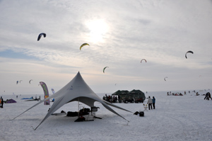 Latawiec będący siłą napędową snowkitera jest najczęściej wpięty w uprząż i znajduje się zwykle w odległości dwudziestu kilku metrów. Do sterowania latawcem służy drążek sterowniczy lub manetki. Snowkiting jest prostszy do nauczenia od kitesurfingu . Twarde podłoże pozwala bowiem na łatwiejszy start i jazdę przy stosunkowo słabym wietrze.Weekend na lodzie w 2012 roku zgromadził ponad 100 uczestników i 27 zawodników biorących udział w wyścigu na 10 kilometrów. Dokładniejsze informacje o przebiegu imprezy i o przyszłorocznych zawodach znajdują się na stronie http://weekendnalodzie.pl