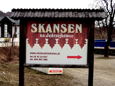 Przy drodze do Limanowej, niemal w centrum gminnej wsi Laskowa w woj. małopolskim, obok zabytkowego, najstarszego w Polsce drewnianego Dworu Michałowskich oraz vis a vis kościoła z jednej i zajazdu „Laskowianka” z drugiej strony, tablica informacyjna kryta daszkiem z drewnianego gontu, zaprasza do Skansenu na Jędrzejkówce. Skorzystałem z zaproszenia i nie żałuję, gdyż okazał się on jednym z ciekawszych, z bardzo wielu, w których już byłem nie tylko w Europie.