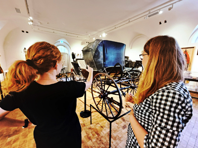 W Stajniach Kubickiego mieszczą się dwie wystawy stałe. Pierwsza, tj. Powozownia im. Zbigniewa Prus-Niewiadomskiego, poświęcona zabytkom hipologicznym z XIX i XX w., obejmuje m.in. kolekcję pojazdów konnych oraz uprzęży w stylach: angielskim, krakowskim, śląskim i bałagulskim, a także akcesoria dla koni i jeźdźców. Druga ekspozycja, tj. Królewska Manufaktura Tkacka – nowe wątki, prezentuje XIX-wieczne krosna żakardowe, dekoracyjne materiały, dziurkarkę oraz karty perforowane z zapisanymi wzorami tkanin. Obiekt będzie dostępny bezpłatnie w każdy weekend lipca. I