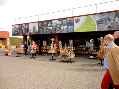 W budynku przed wejściem na teren tego sanktuarium oraz sąsiadującym z nim pawilonie handlowym można kupić krzyże w ogromnym wyborze i chyba na każdą kieszeń. To oferta dla tych, którzy w ostatniej chwili decydują się zanieść na Górę również własny.