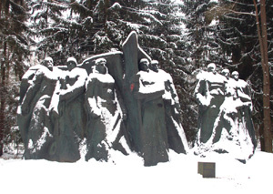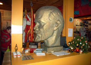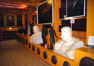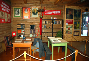 Za wejściem wita nas kamienny krasnoarmiejec z pepeszą, jakieś zabytkowe działko z II wojny światowej oraz największy pomnik ośmiu nadnaturalnej wielkości działaczy komunistycznych. Później stoi inny krasnoarmiejec ze sztandarem i cała galeria Leninów, Stalinów oraz innych zasłużonych komunistów. W muzeum – „domu kultury”, także liczne poświęcone im rzeźby, portrety i obrazy.