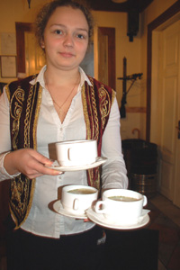 W otrzymanej od niego ulotce informującej o restauracji oraz Karaimach znalazłem na temat tych drugich cytat naszego XIX-wiecznego pisarza Władysława Syrokomli (Ludwika Kondratowicza): „Karaimi, ipso iure byli niby na wpół szlachtą, przynajmniej byli uważani w dosłownym sensie tego słowa obywatelami tego kraju, a nie cudzym plemieniem”. Gospodarz, z wykształcenia informatyk i cybernetyk, mówi dobrze po polsku, podobnie jak chyba cały personel jego restauracji. Mniejszość polska jest zresztą w Trokach spora. Mieliśmy okazję dowiedzieć się wiele o dziejach i współczesności Karaimów, ich religii oraz – oczywiście także spróbować – przysmaków karaimskiej kuchni.
