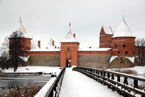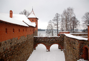 W wodzie jeziora Galwe (po litewsku Galvės) odbijają się ceglane baszty, wieże i mury obronne średniowiecznego zamczyska. Malowniczej i wspaniale zlokalizowanej na wyspie historycznej siedziby wielkiego księcia litewskiego Witolda (Vytautasa) zanim stolica księstwa przeniesiona została z Trok do odległego o 28 km Wilna. Z lądem stałym, na którym położone jest dziś to 6-tysieczne miasto, zamek łączy tylko drewniany most. A ściślej dwa. Pierwszy prowadzi na niewielką bezludną wysepkę z ruinami na wzgórzu, drugi z niej na wyspę. Jest to jeden z trzech w przeszłości zamków trockich, ale najważniejszy i największy.