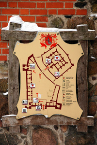 Ślady tej odbudowy – jasne cegły i kamienie, nie mówiąc już o wszystkich dachówkach, widoczne są na każdym kroku. Zaś efekty rekonstrukcji najlepiej można zobaczyć na planie zamku umieszczonym na murach bramy po jej wewnętrznej stronie. Nad całością góruje kompleks zamku górnego z pałacem książęcym i wieżą bramną, która w przeszłości pełniła funkcję donżonu.Jest on dodatkowo chroniony grubymi murami obronnymi z basztami i wieżami oraz fosą, oddzielającymi także od przedzamcza, nazywanego też zamkiem dolnym, w którym dawniej były pomieszczenia gospodarcze. Mieszczące się w obu częściach muzeum historyczne należy do ciekawszych w kraju.