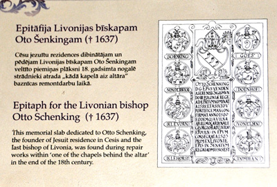 Ponadto rycerza Dītrihama Lodem, † 1518, z wyrytą jego postacią w zbroji na czarnej płycie. Zabytkowe nagrobki i epitafia zachowały się w różnym stanie, każdy jest jednak opisany na sąsiadujących z nimi tabliczkach informacyjnych. Z rysunkami dekoracji, które częściowo zatarte, mogą być słabo widoczne.