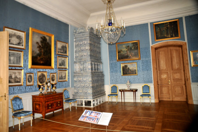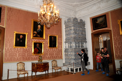 Amfiladę stanowi ciąg pokojów i sal książęcych. Ze ścianami pokrytymi jedwabiem, mnóstwem obrazów, zwłaszcza holenderskich, rzeźb, mebli itp. W każdym z nich uwagę przyciągają też ogromne, wysokie, bogato zdobione piece kaflowe. W większych pomieszczeniach nawet po dwa w rogach. Sprowadzono je z Delft oraz Gdańska.