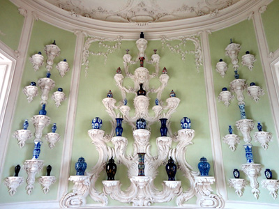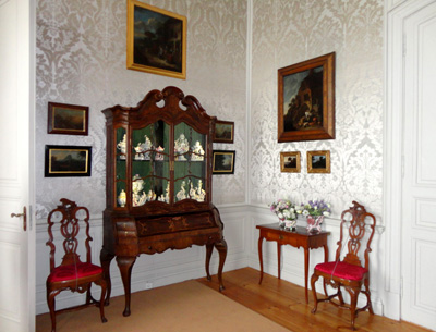Obok tej sali znajduje się Gabinet Porcelanowy, w którym na bogato zdobionych rokokowych konsolach ustawiono w formie trójkątnych piramid kolekcję waz, dzbanów, pucharów, talerzy i innych naczyń z porcelany chińskiej i japońskiej. Galerie pełne obrazów i innych dziel sztuki prowadzą do drugiej wspaniałej, ogromnej sali: Balowej nazywanej też Białą.