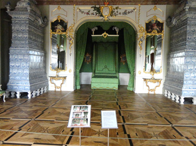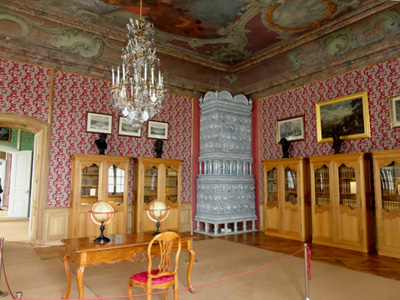 Ozdobił ją, również już wspomniany, berliński rzeźbiarz J. Graff. Na jej suficie uwagę zwraca przede wszystkim odciśnięte bocianie gniazdo wzorowane na prawdziwym. W ścianach zaś ogromne okna i lustra. Wyjątkowo bogaty jest rokokowy wystrój i wyposażenie Pokoju Różanego, z przedstawioną na stropie Florą, boginią wiosny i kwiatów.