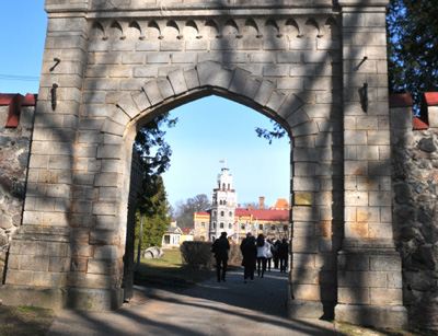 Tuż przed wejściem na teren zamków przez stylizowaną na starą bramę, obejrzeć można niewielką galerię rzeźb z metalu i kamieni pod gołym niebem. Po przekroczeniu bramy widać w całej okazałości kamienny Nowy Zamek. Po jego lewej stronie dawny dworek, w którym eksponowana jest aktualnie wystawa fotografii Siguldy, jej zabytków i scen z życia mieszkańców z lat 1910 – 1930.