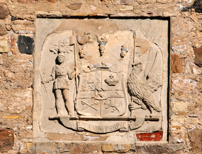 Na ścianie wieży bramnej widoczny jest, wykuty w kamieniu, herb twierdzy Segewold. Pięciopolowa tarcza, z postacią rycerza po lewej i dużym ptakiem po prawej stronie oraz łacińską sentencją : „Omne trinum perfectum” poniżej. Od strony wewnętrznej zamek prezentuje się już gorzej.