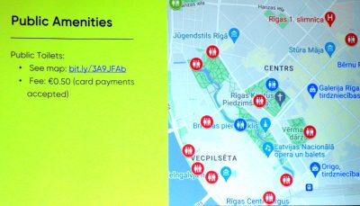 Interesująco zapowiada się Tydzień Kulinarny z programami w 4 obiektach, w tym wycieczki do wytwórni słynnego ziołowego Ryskiego Balsamu, czy Tydzień Czekolady. Wśród pokazanych specjalistycznych planów miasta, jeden poświęcony został lokalizacji fontann pod gołym niebem, inny parkingów autokarowych z ich adresami i informacjami, jakiej wielkości pojazdy mogą się tam zatrzymywać i jak długo stać. No i trochę zaskakująca, ale wszyscy turyści, którzy w obcych miastach mają z tym problem, mapka z lokalizacją… publicznych toalet. Dostępną również w aplikacji oraz informacją, że wstęp kosztuje 0,50 €, a płacić można również kartami bankowymi.