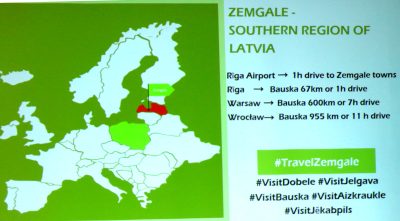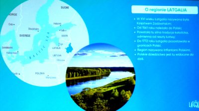 Prezentację regionów rozpoczęła Łatgalia – w znacznej części obszar dawnych polskich Inflant, z mieszkającymi tam nadal Polakami oraz szczególnie ciekawymi dla nas miejscami i atrakcjami. Przedstawiła go Marina Avlasina z Daugavpils Iourist Information Centre w Dyneburgu. Miasto to, położone nad Dźwiną, ponad 80-tysięczne, drugie pod względem liczby mieszkańców w kraju i stolica Łatgalii jest ważnym centrum naukowym, kulturalnym i przemysłowym. Pełnym zabytków, ciekawych miejsc i obiektów. W br. obchodzi 750-lecie pierwszej o nim wzmianki pisanej w roku 1275.